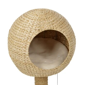 Sowohl die Höhle als auch der Kratzstamm des AniOne Kratzbaums Taro sind aus natürlicher Wasserhyazinthe gefertigt, die dem Kratzbaum nicht nur seine hochwertige und moderne Optik verleiht sondern zudem noch für eine hohe Luftdurchlässigkeit der Kuschelhöhe sorgt. Diese ist mit einem weichen und bequemen Liegekissen ausgestattet, das bei Bedarf auch ganz leicht entnommen und bei 30° gewaschen werden kann. Der Kratzbaum eignet sich ideal für kleine bis mittelgroße Katzen und findet aufgrund seiner Größe selbst in kleinsten Haushalten Platz. So schenkt dieser AniOne Kratzbaum nicht nur dank seines wunderschönen Aussehens und seiner natürlichen Materialien lange optische Freude sondern bietet Ihrer Samtpfote auch genau das was sie braucht: Eine kuschelige Höhle zum Zurückziehen und Beobachten sowie robustes, umweltfreundlicheres Sisal für ausgiebigen und langanhaltenden Kratzspaß.