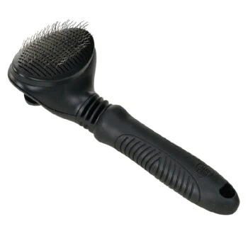 Durch die leichte Krümmung der aus Edelstahl gefertigten Stifte ist eine gründliche Reinigung des Fells ohne das Ausreißen von gesundem Fell möglich. Mit Hilfe der integrierten Reinigungsfunktion lassen sich die aufgenommenen Haare kinderleicht per Knopfdruck entfernen. Eine Öse im Griff ermöglicht eine hängende Aufbewahrung. Für noch mehr Komfort sorgt die Flexzone, welche bei zu viel Druck auf der Bürste nachgibt und unterstützt somit die sanfte Fellpflege. Der ergonomische Griff mit Struktur gewährleistet optimalen Halt.